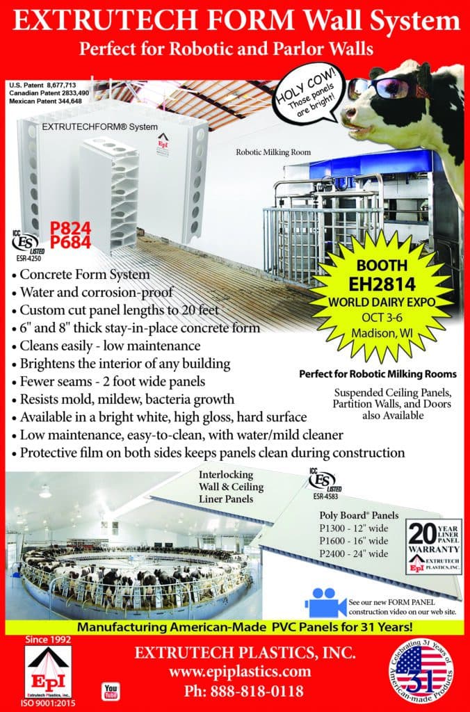 Extrutech Plastics, Inc. EPI manufactured (Poly Board) PVC Wall and Ceiling panels are easy to install, go up fast and perfect for dairy applications. These pvc panels feature a smooth bright white, sanitary, easy to clean surface and with its reflective surface helps improve interior lighting. For 33 years Extrutech PVC Wall and Ceiling Panels has been known for the best shine in the industry, so if you want your project shine you want Extrutech.